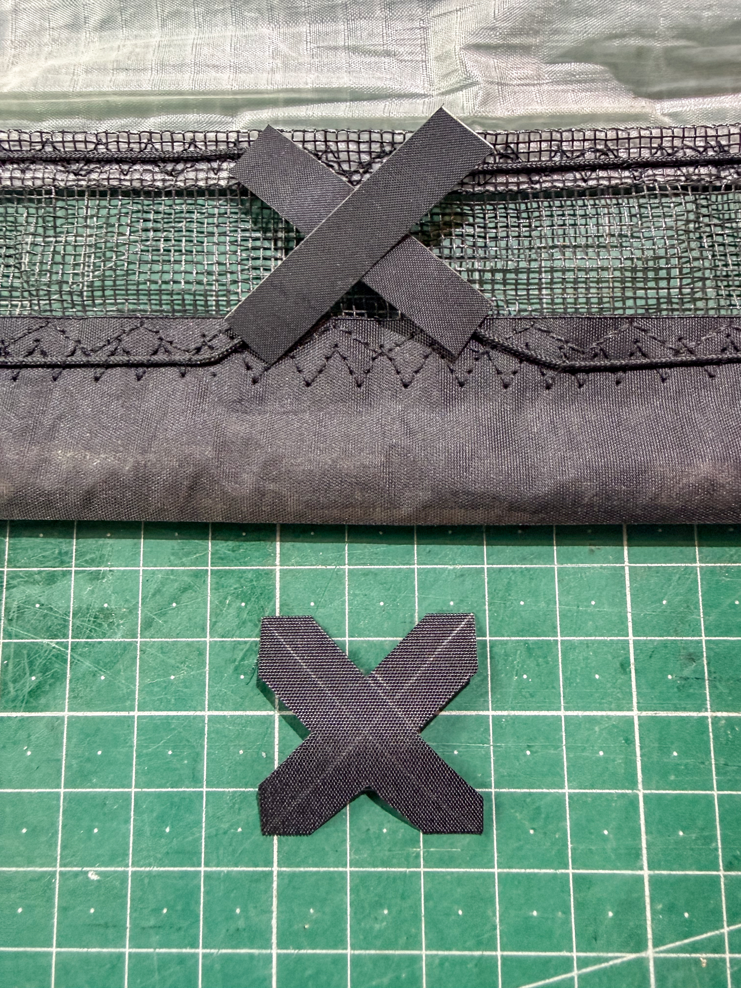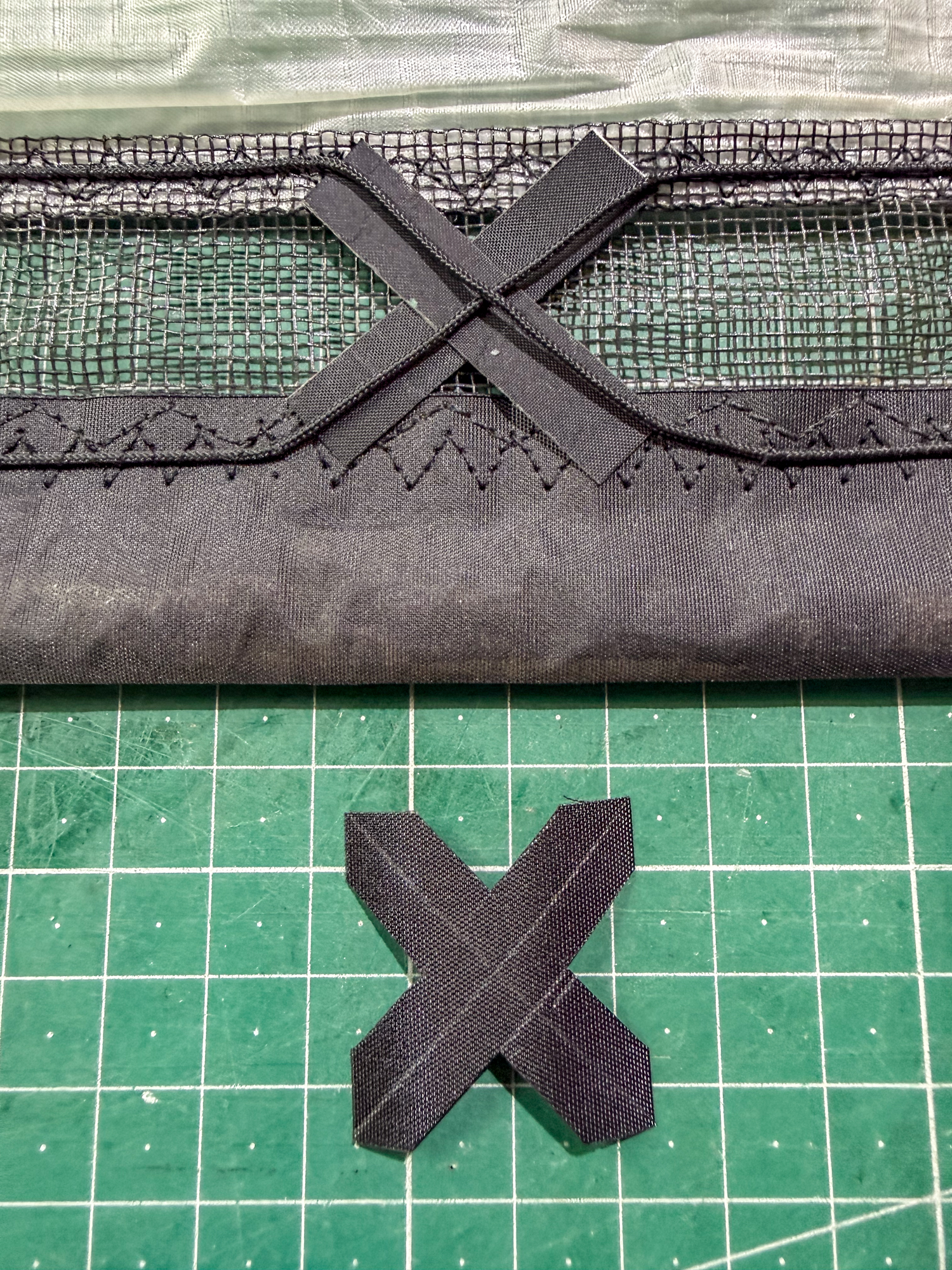 An accurate template will be needed for cutting the dacron Xs.
