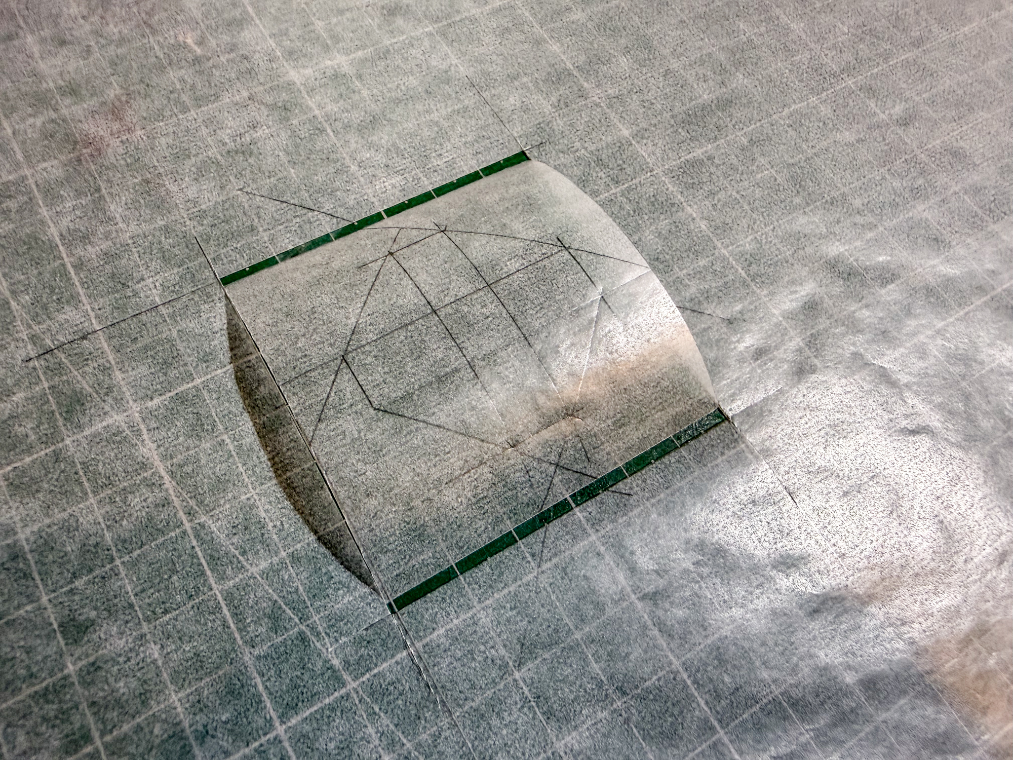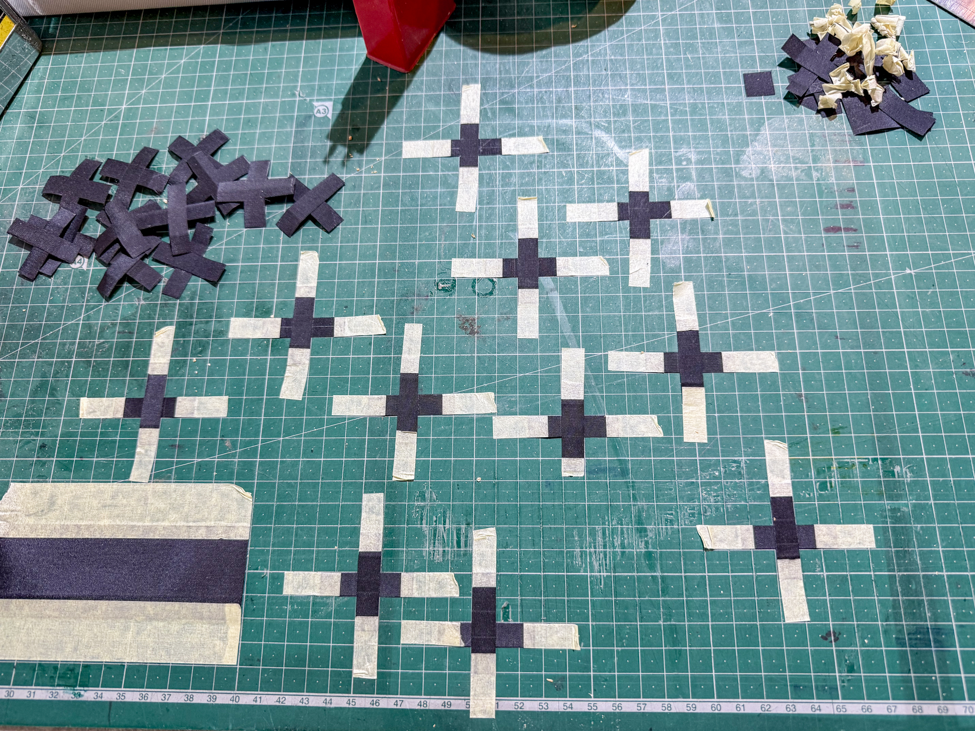 Xs were taped in place to start.