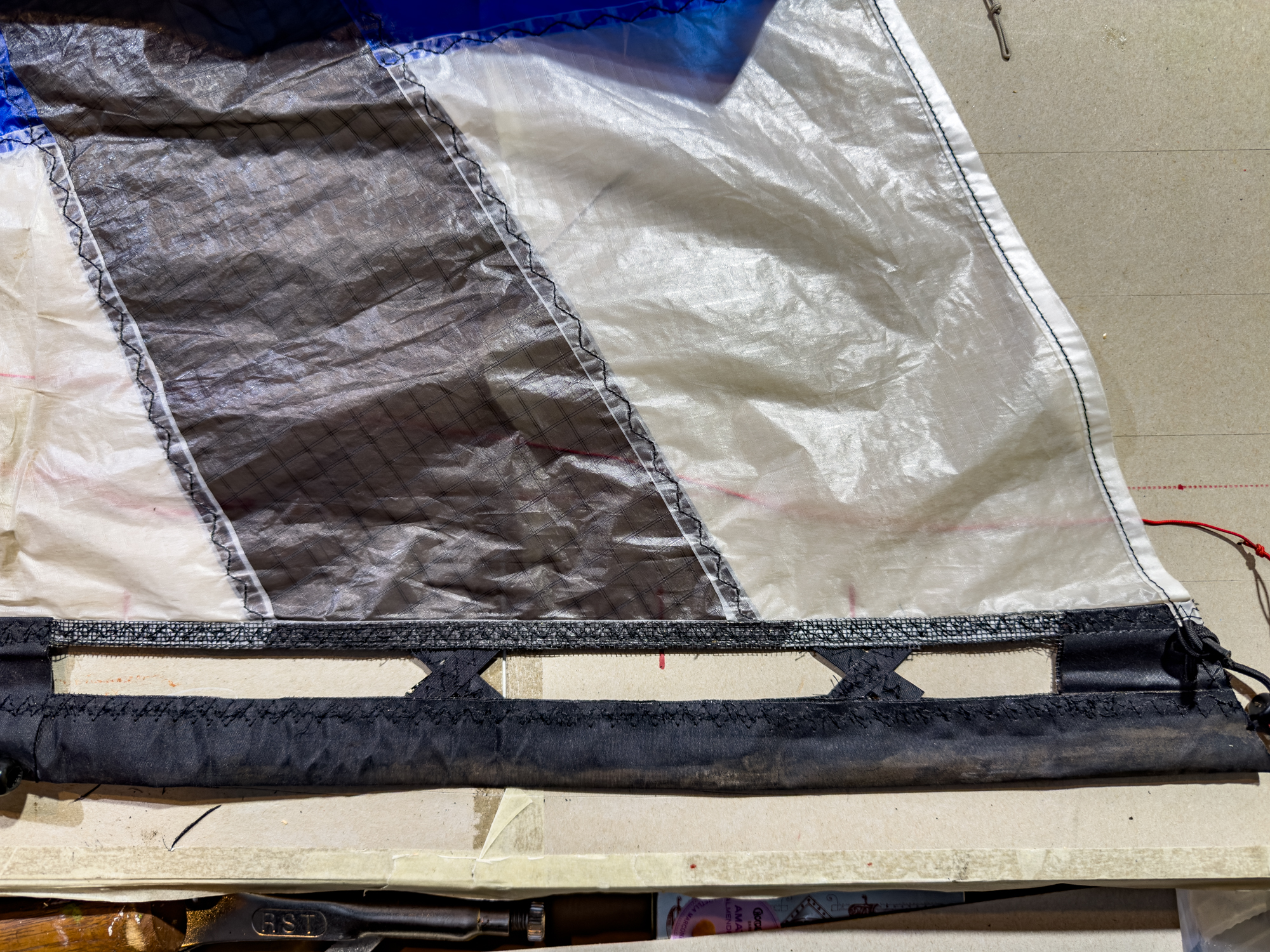 This meant that there was a clear need to add in the short 4cm elements making the final sewing completely straightforwards. This was particularly important for visual continuity on the front of the sail!