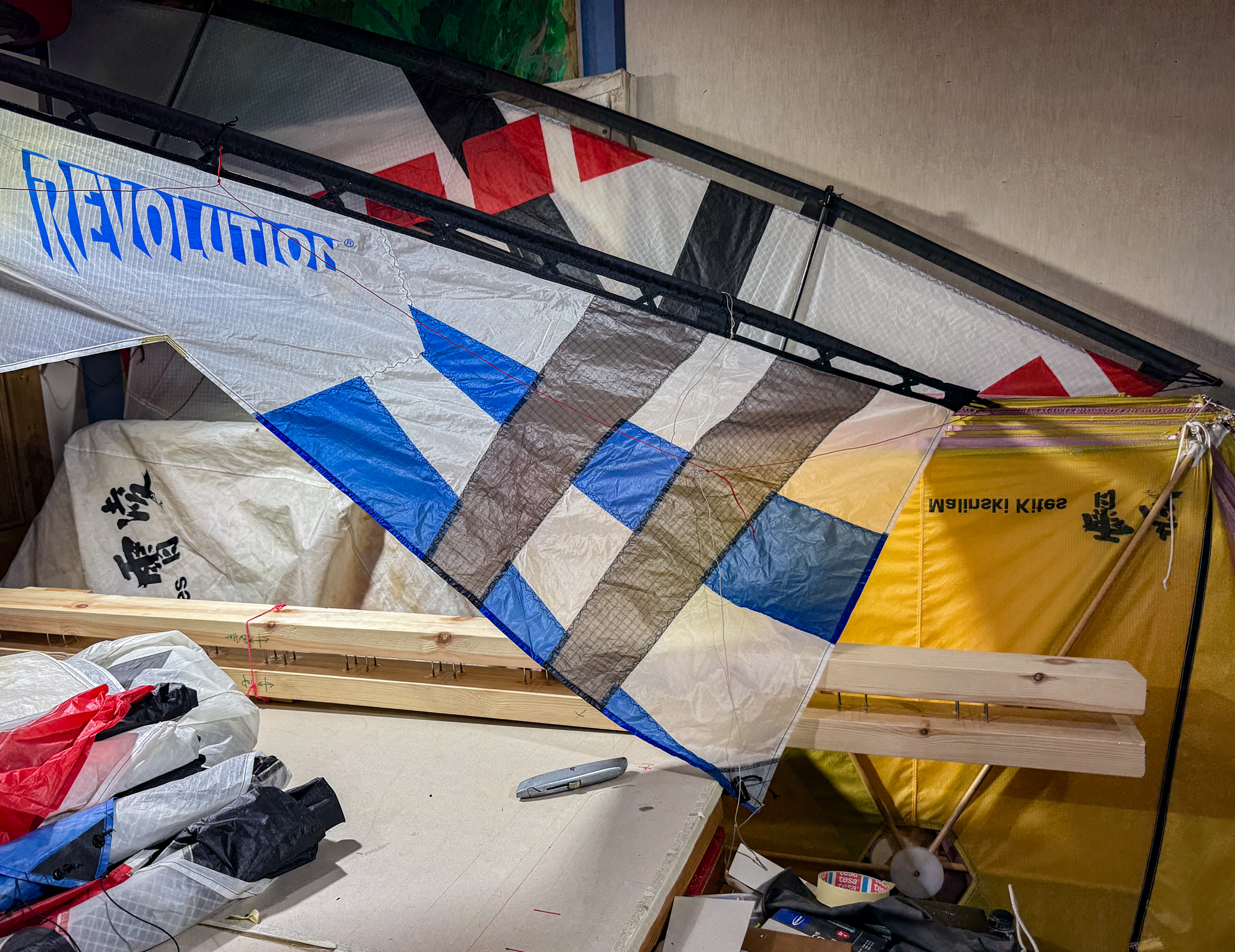 All seemed well so the kite was landed and the mesh cut through in all segments.