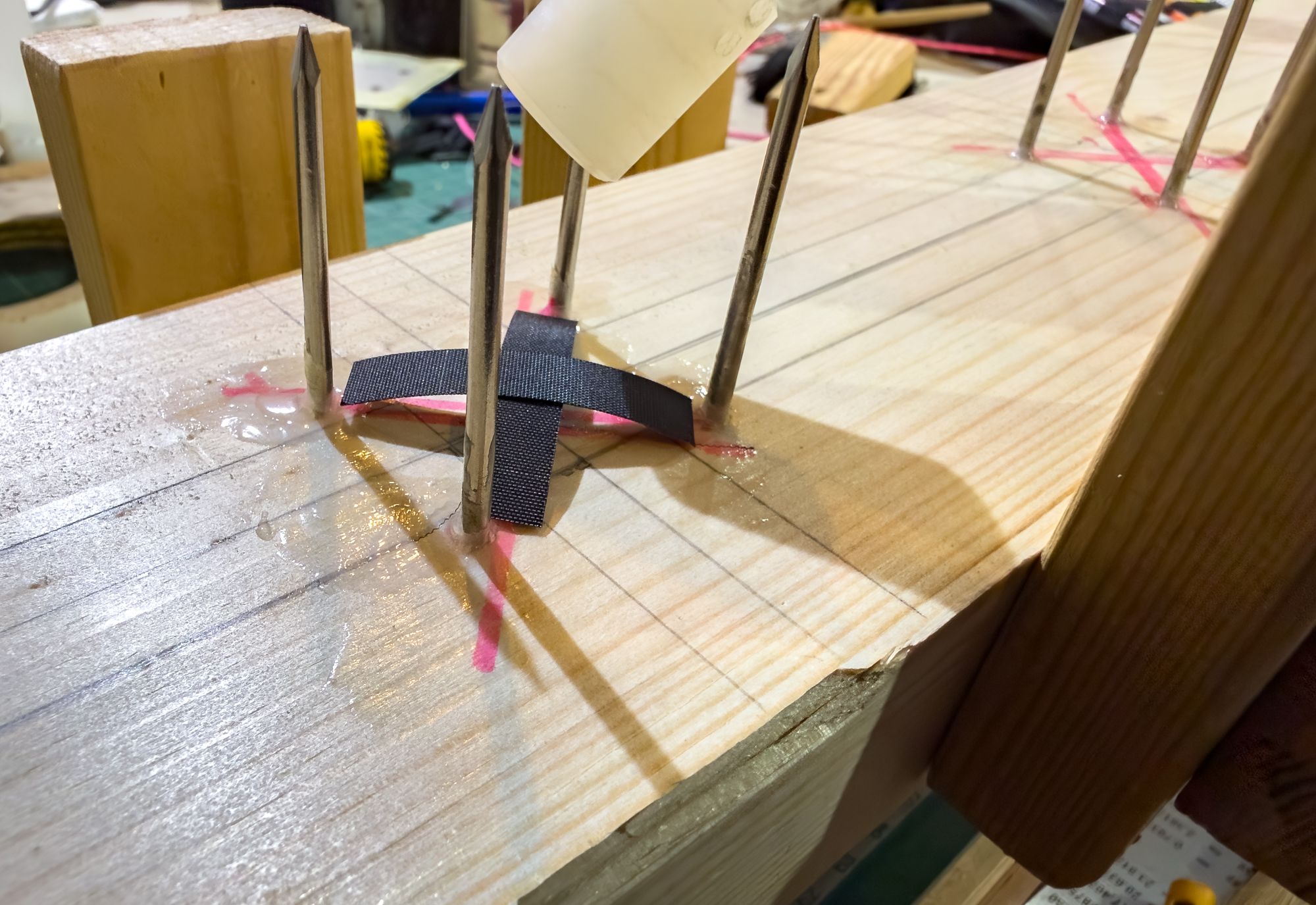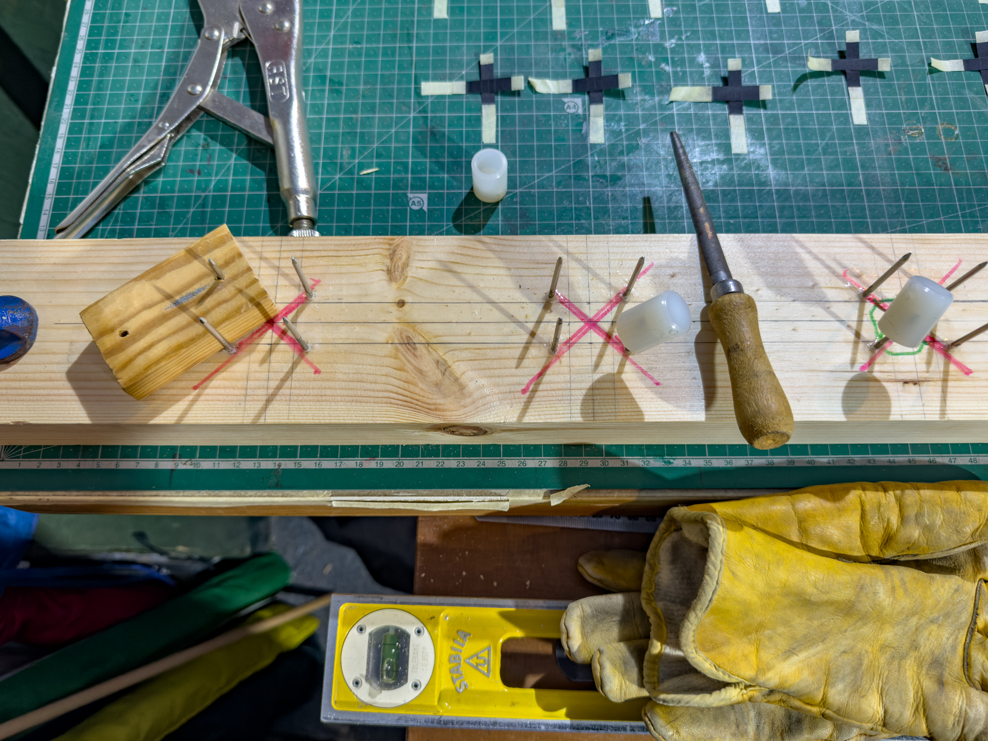Although it may not make a lasting difference the nail heads in the jig have been re-glued and left to set.