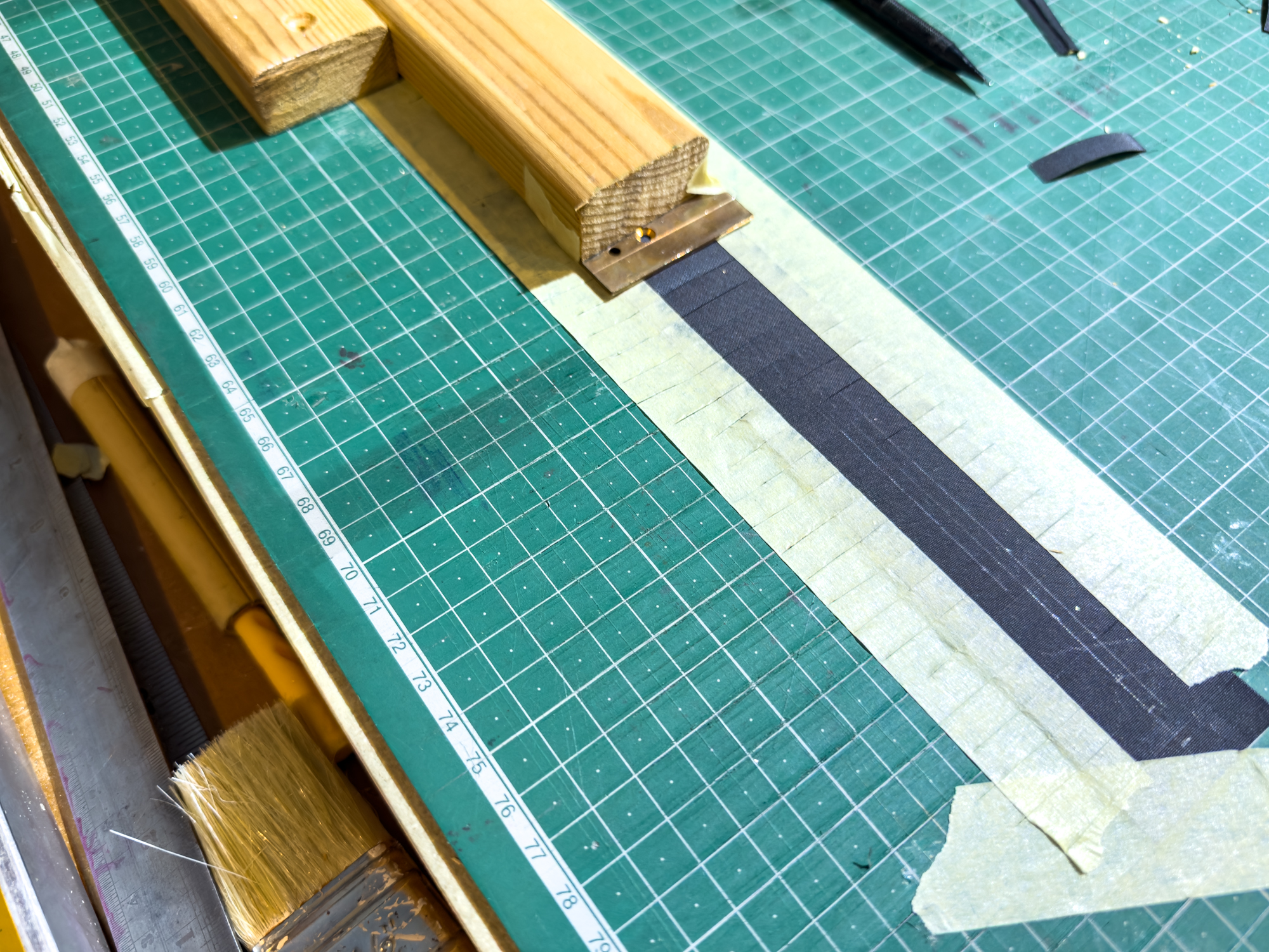 The jig was then removed and the long tape elements used to finalise the position of the lines as a best effort.