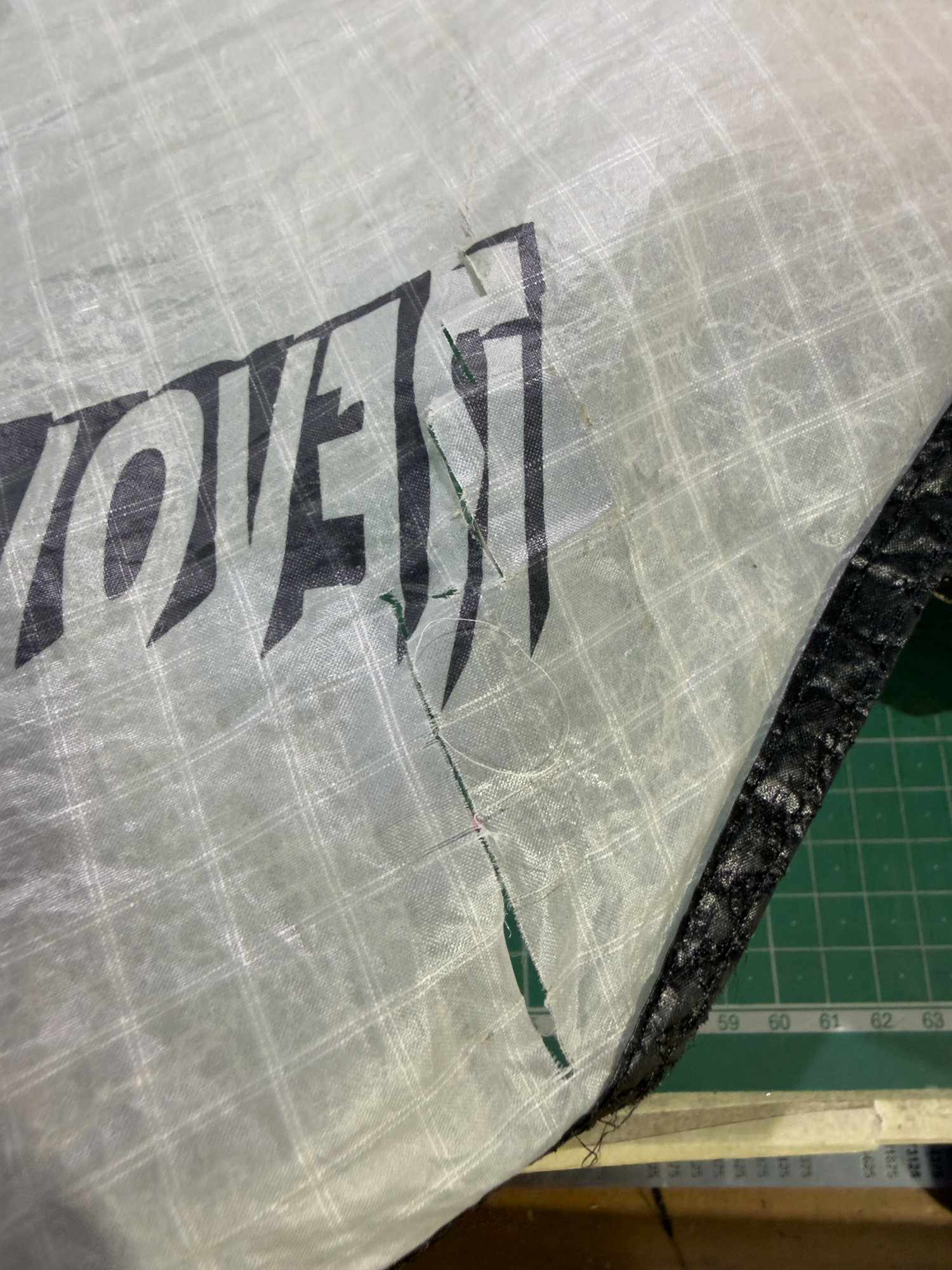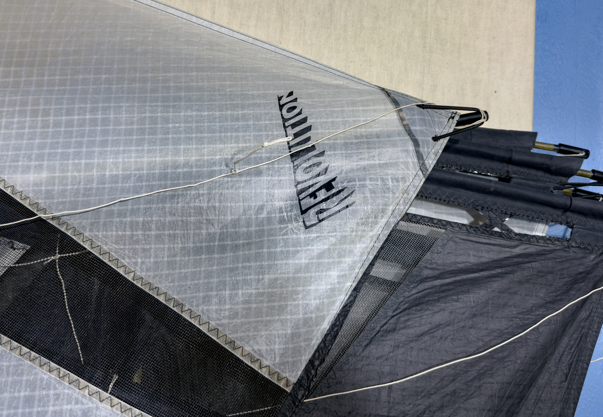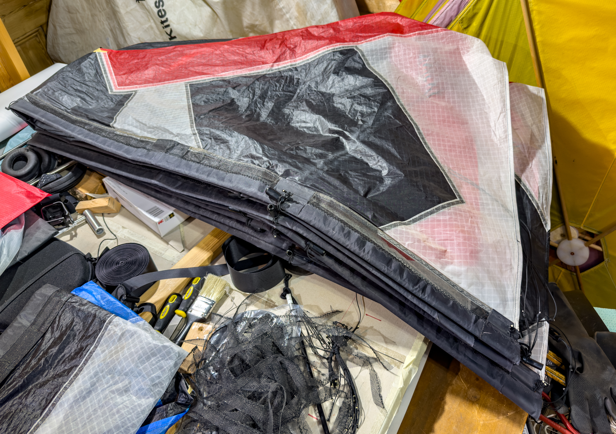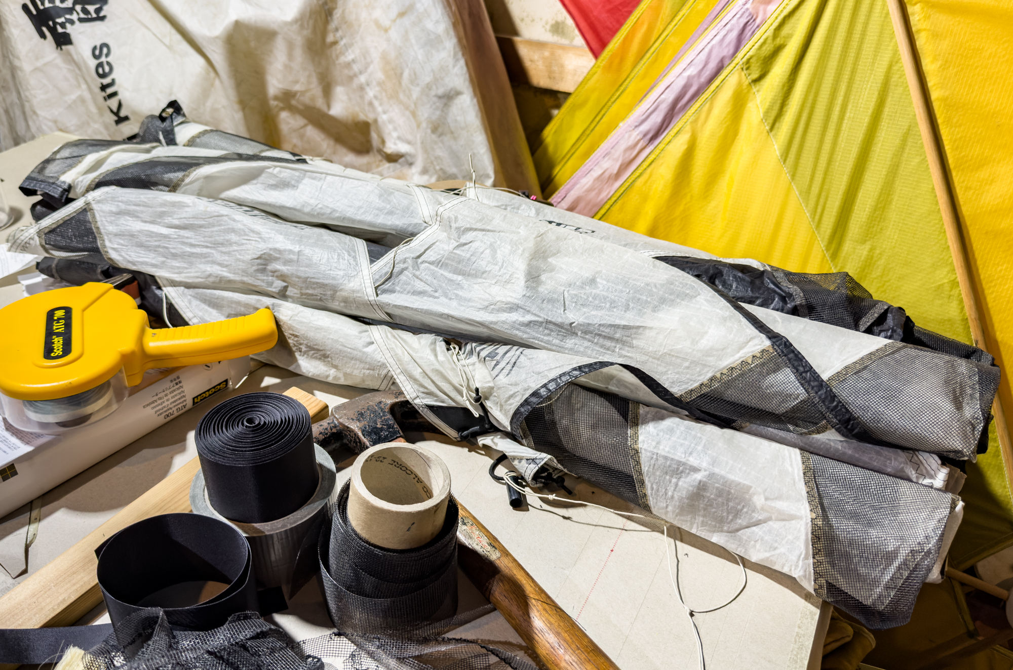 Remains of the leading edge gauze from the eight 2009 sails.