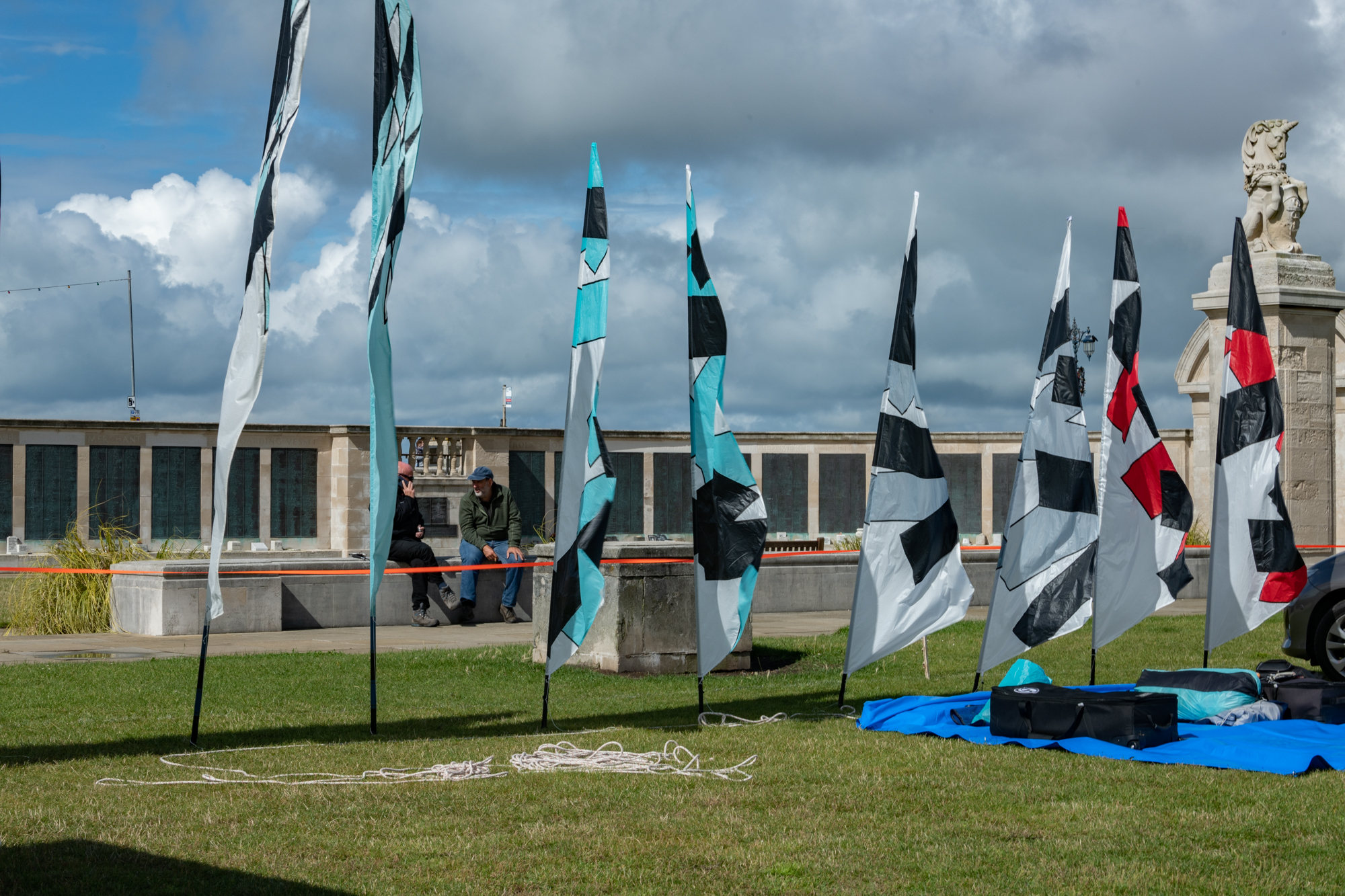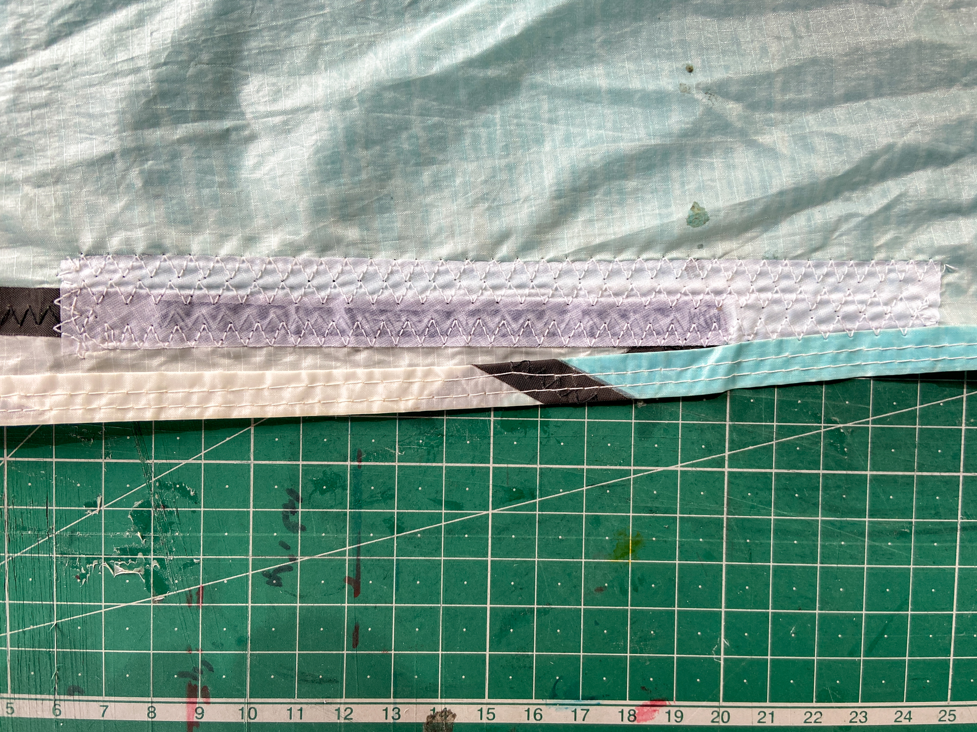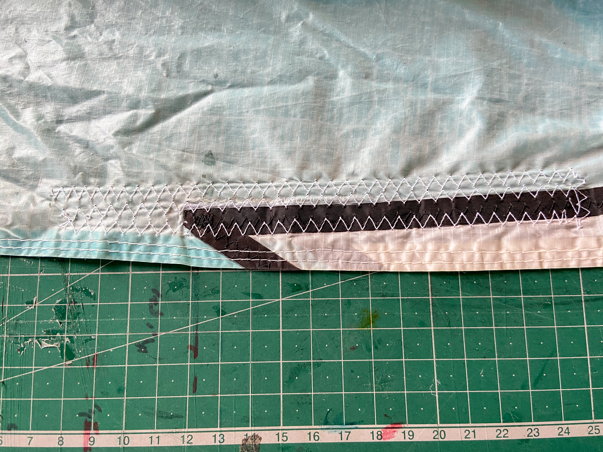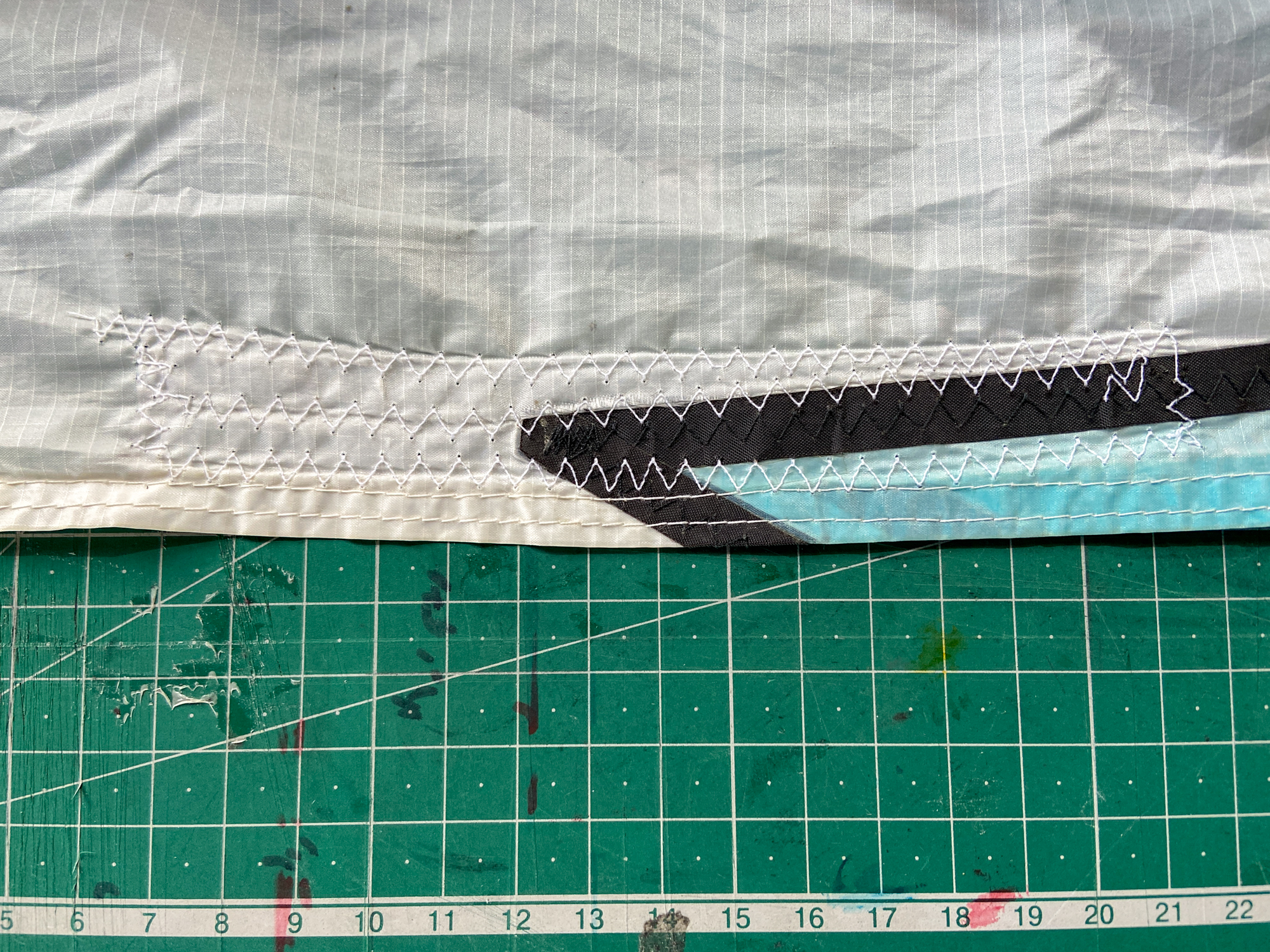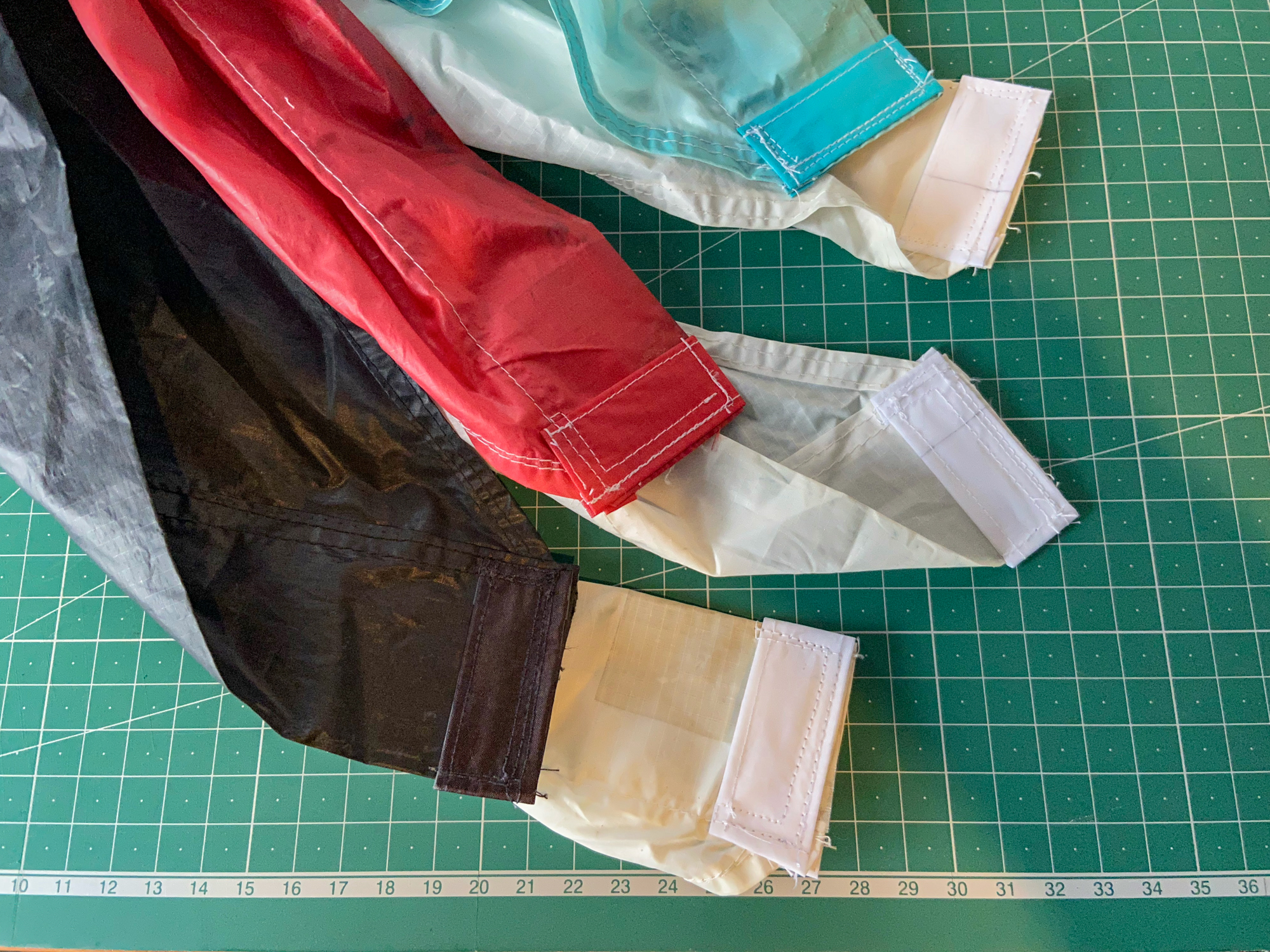 Dacron reinforced pockets attached to banner tips, July 2021.