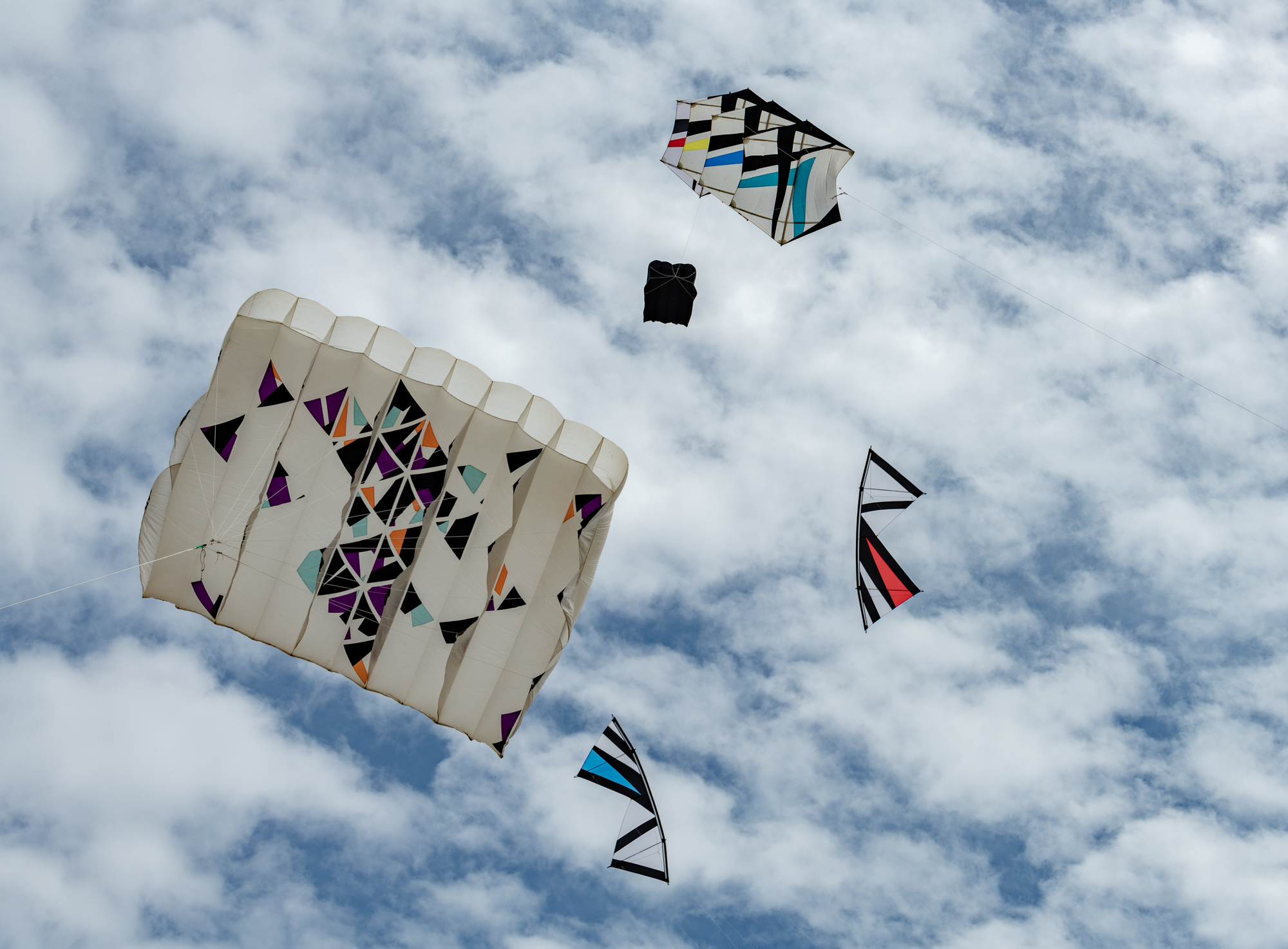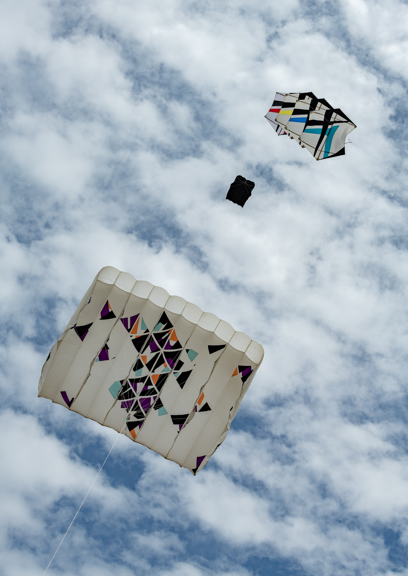 Lex Kraaijeveld caught the two parafoils, rokkaku stack and the revs in the one image, the other three images by Felix Mottram.