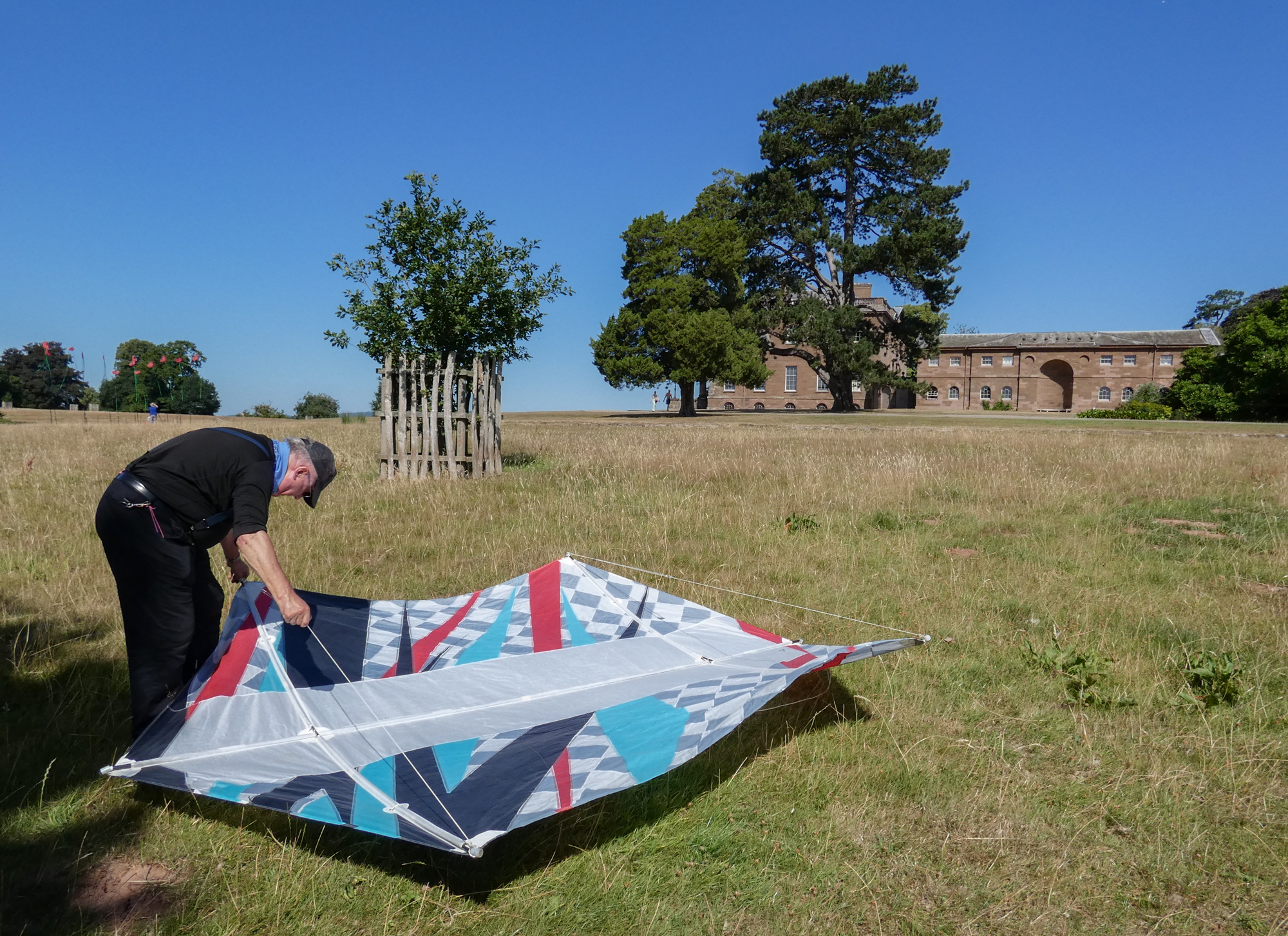 The Rokkaku was the fourth one from the set of five to arrive in the collection. Scott came to fly both kites on Thursday 1st May. The light wind conditions meant that the Parafoil would not have been viable. That will await another 'meeting'.