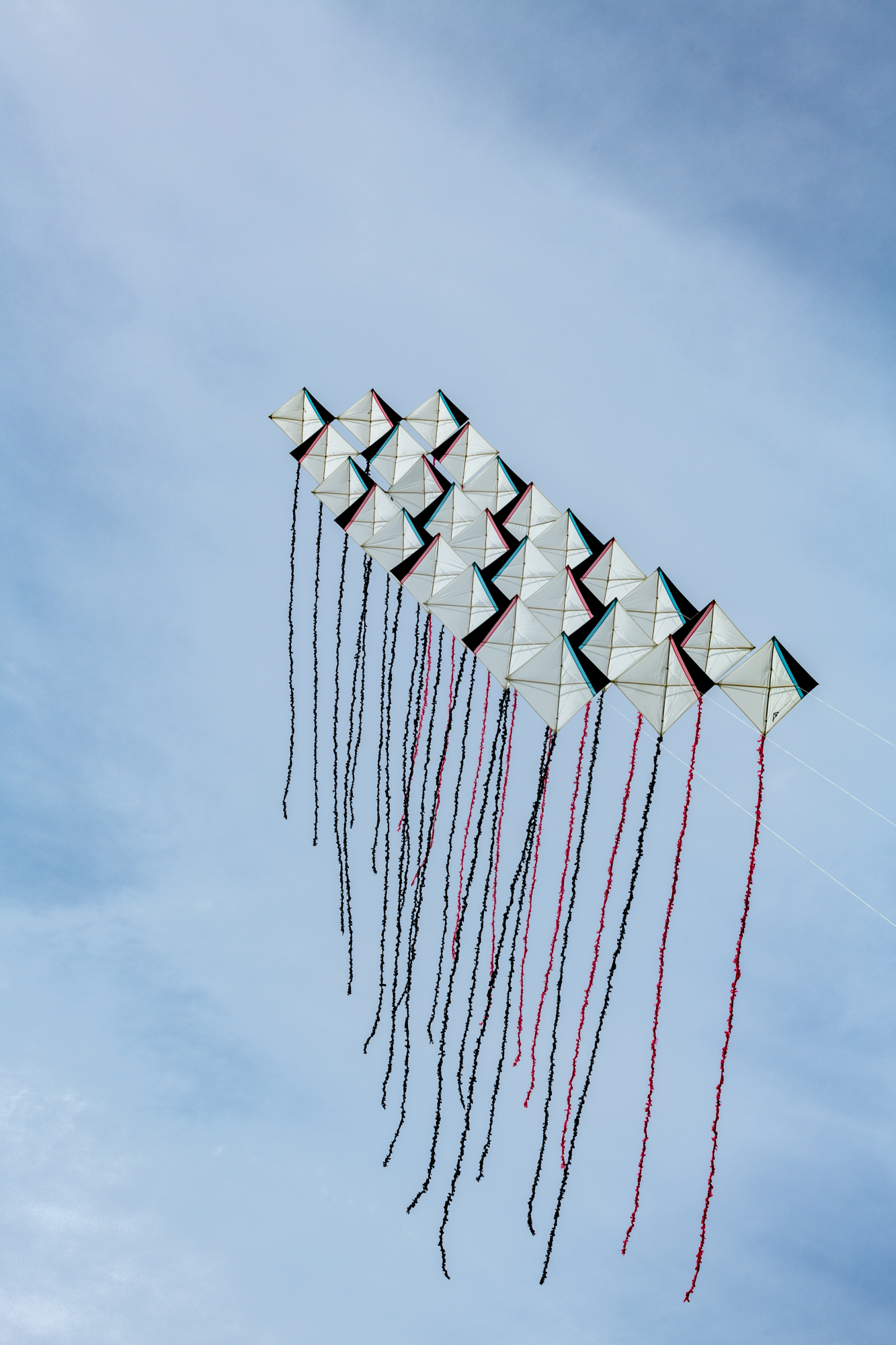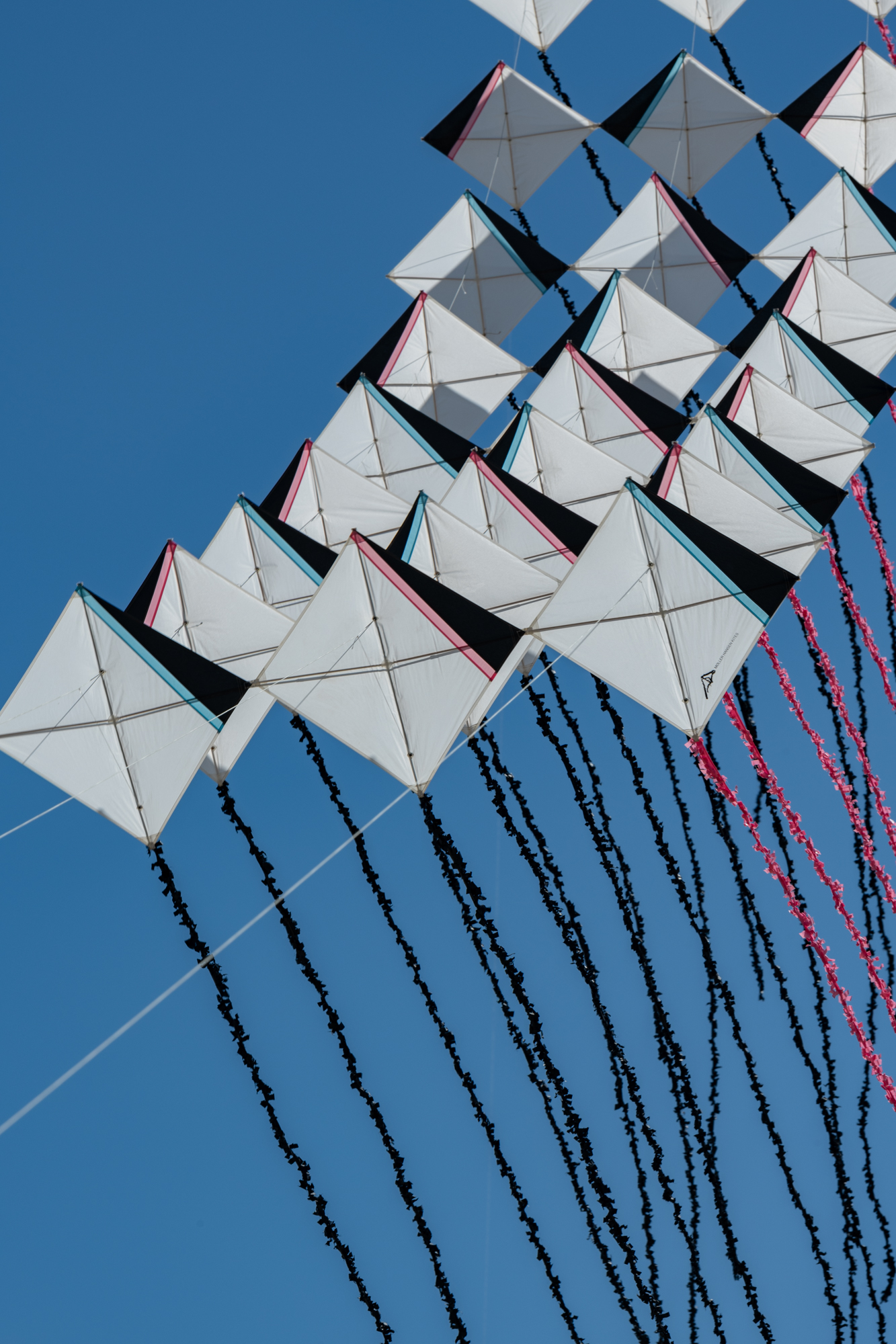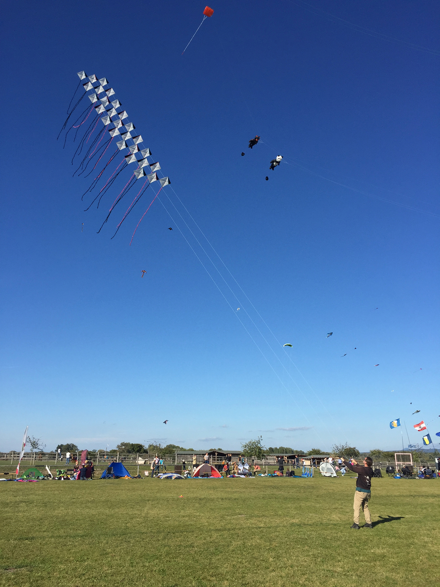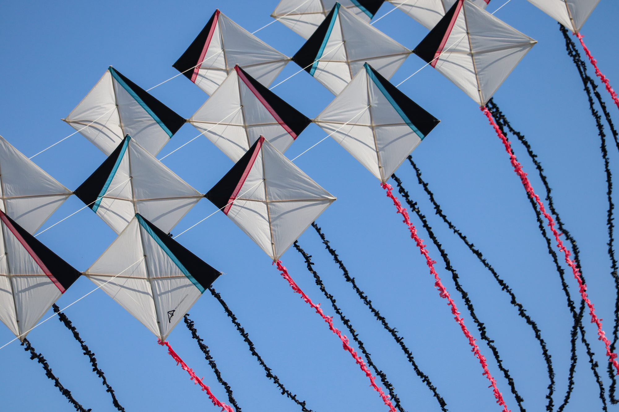 The two stacked kites were prepared for the afternoon session, launched together and walked into the arena.