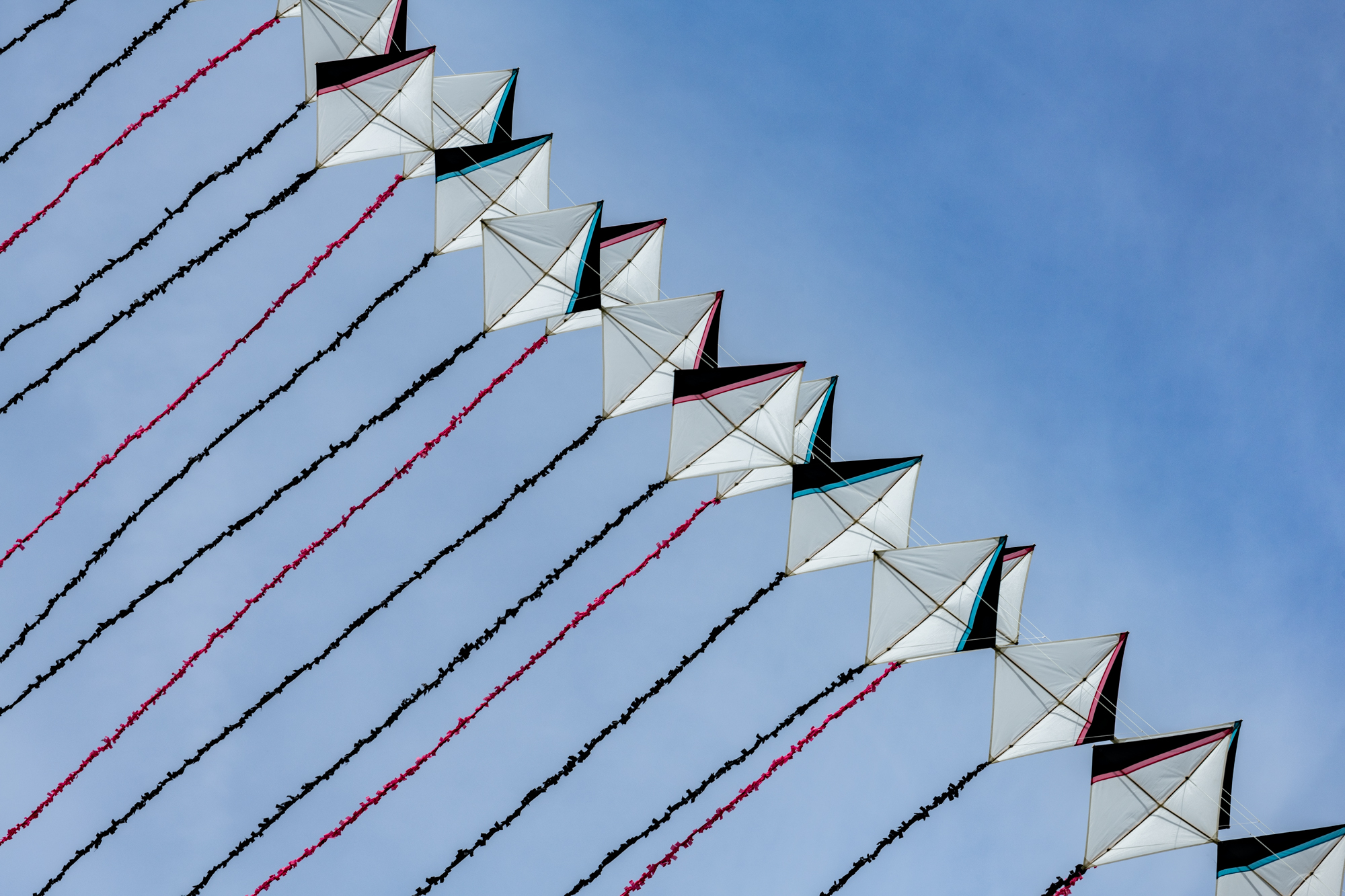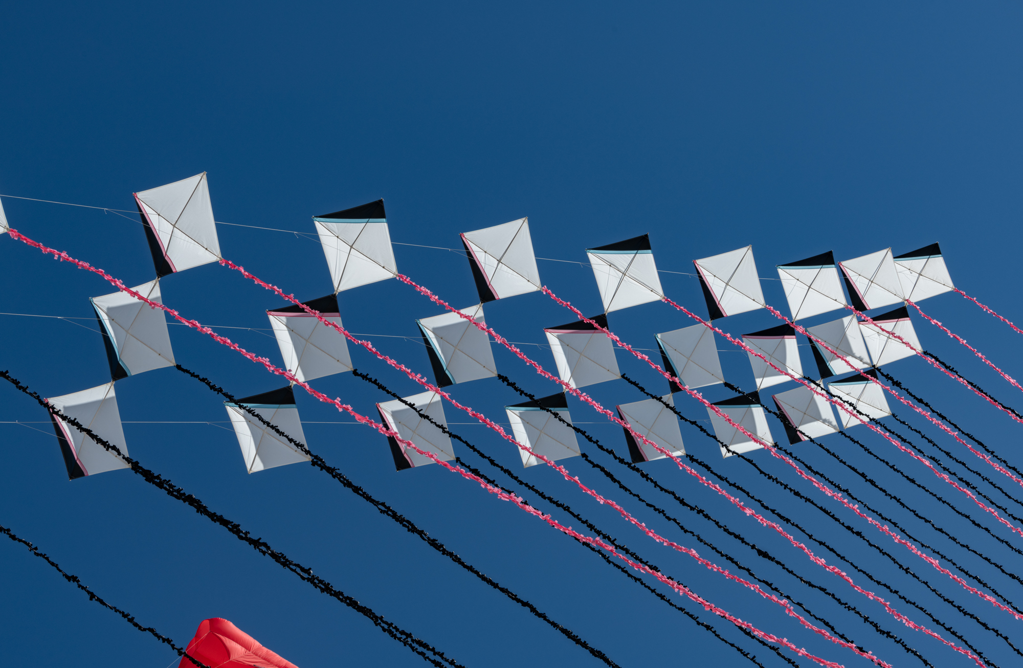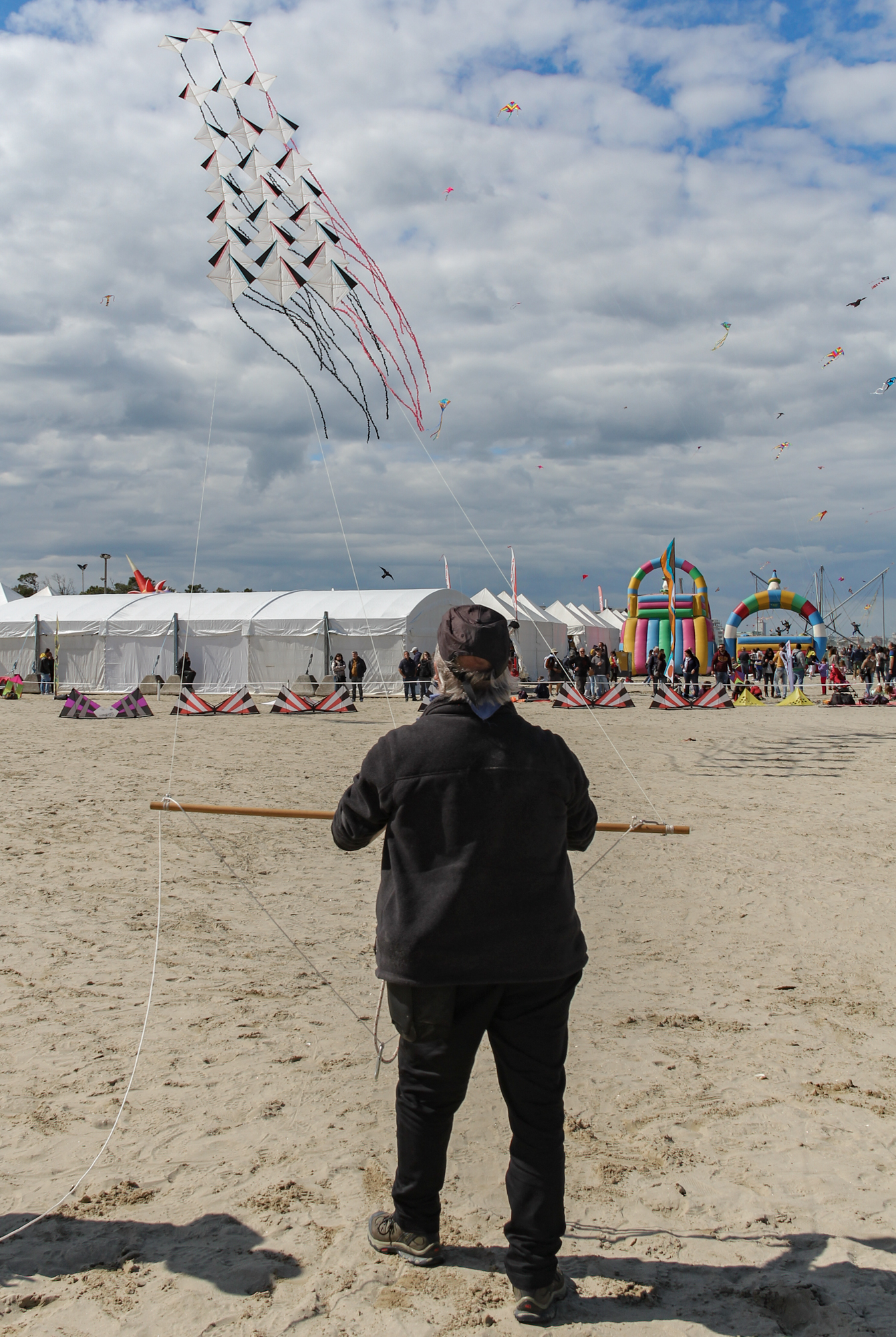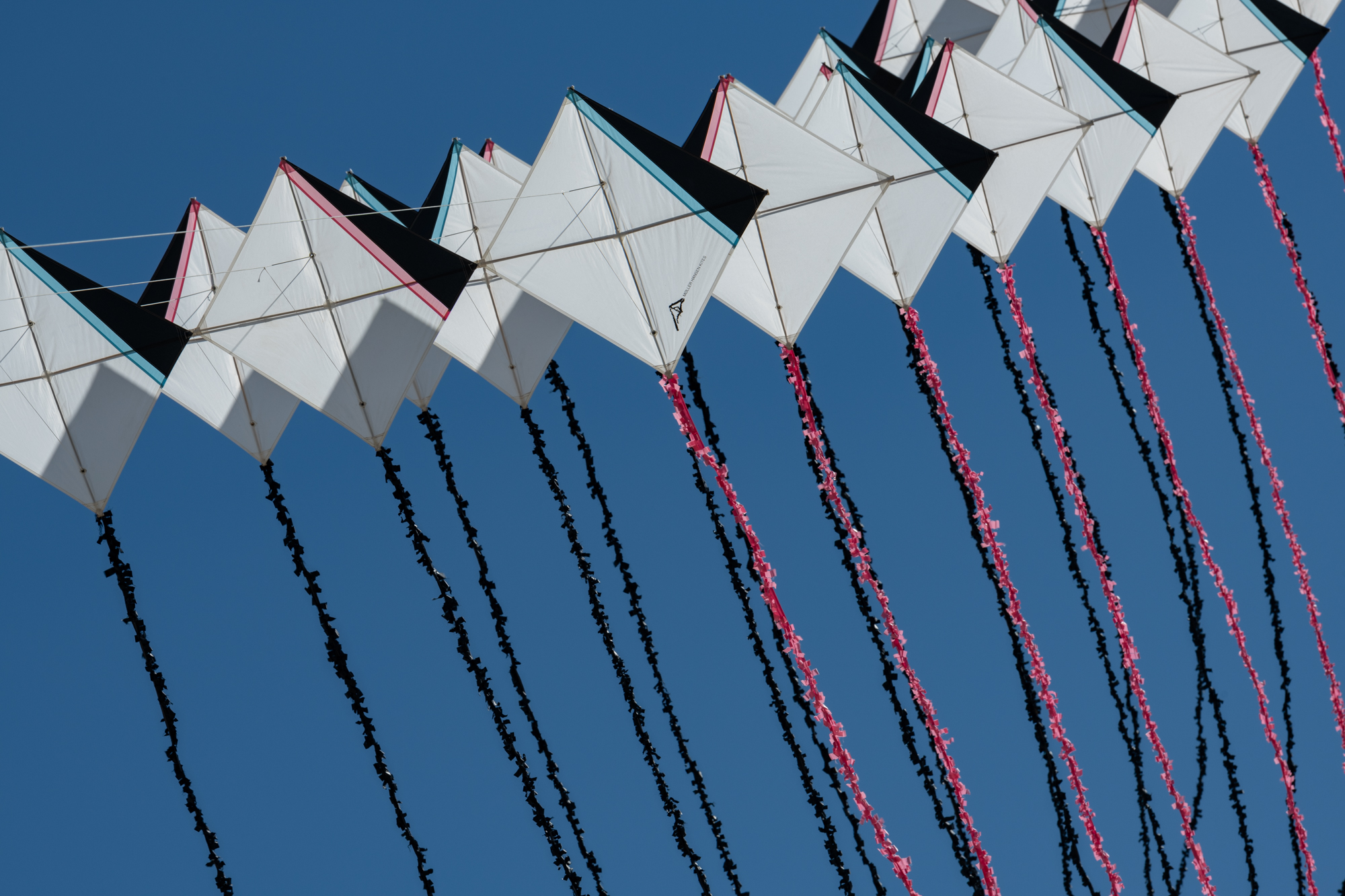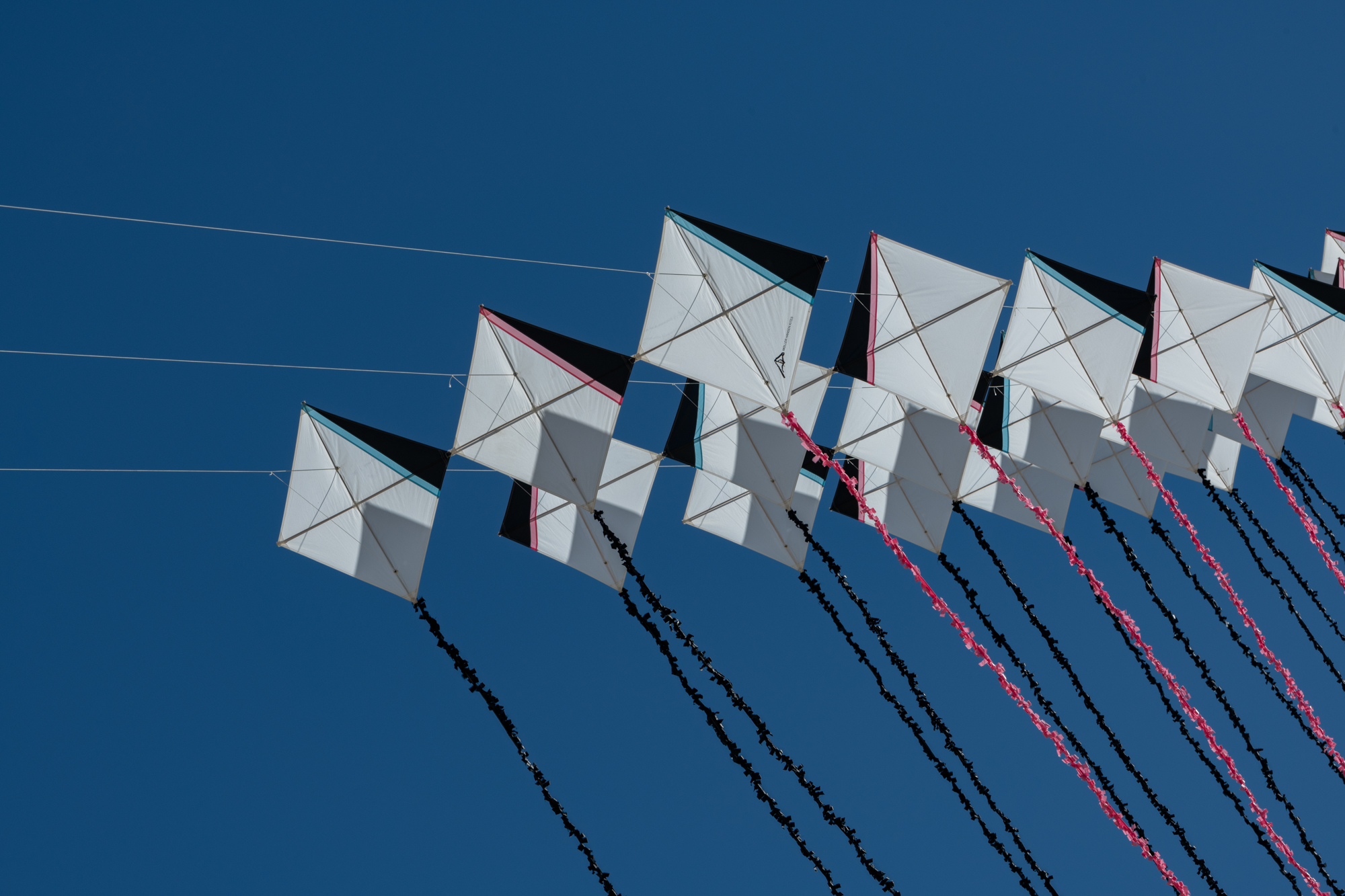 The two stacked kites were prepared for the afternoon session, launched together and walked into the arena.