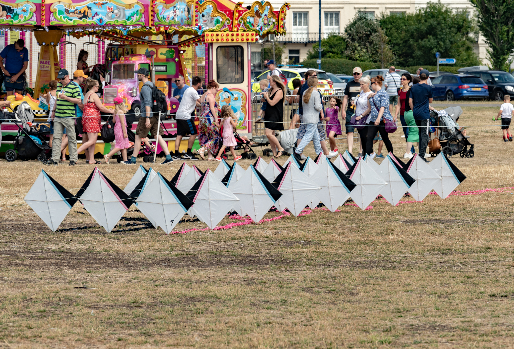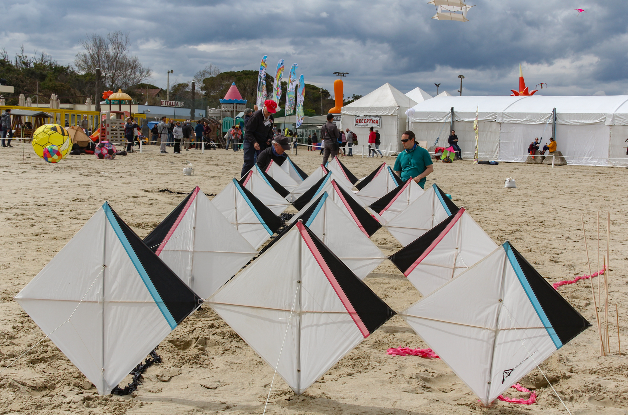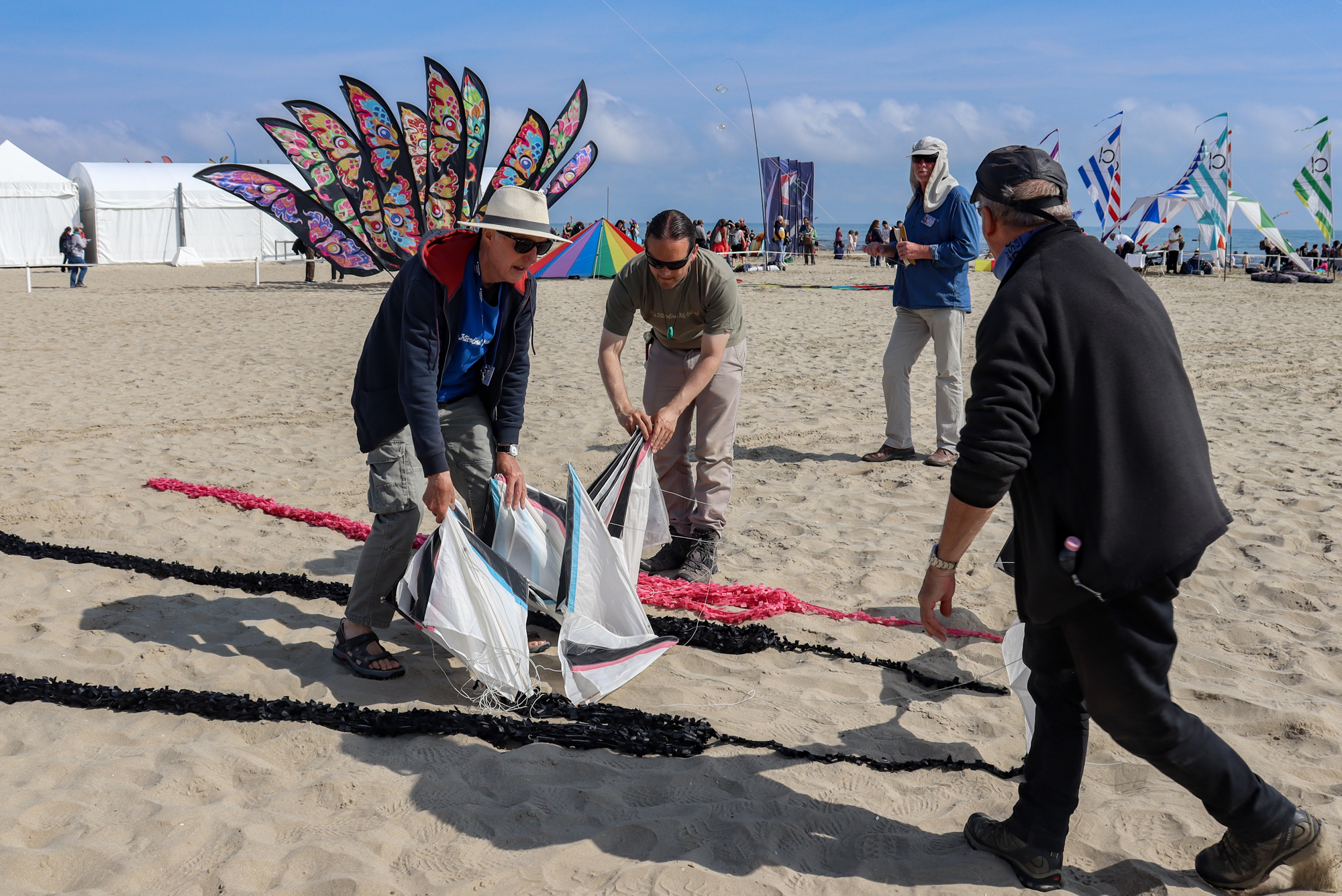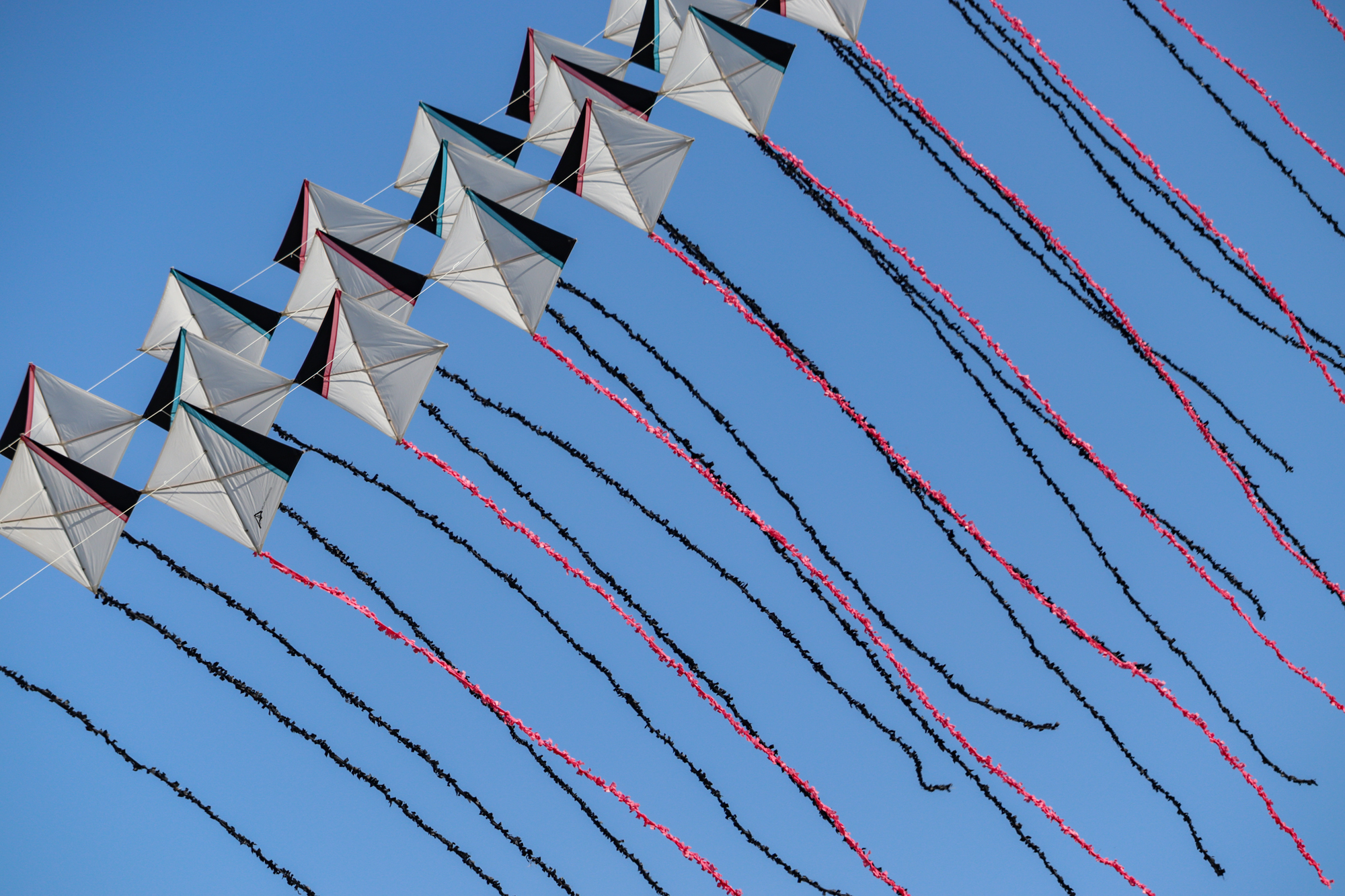The two stacked kites were prepared for the afternoon session, launched together and walked into the arena.
