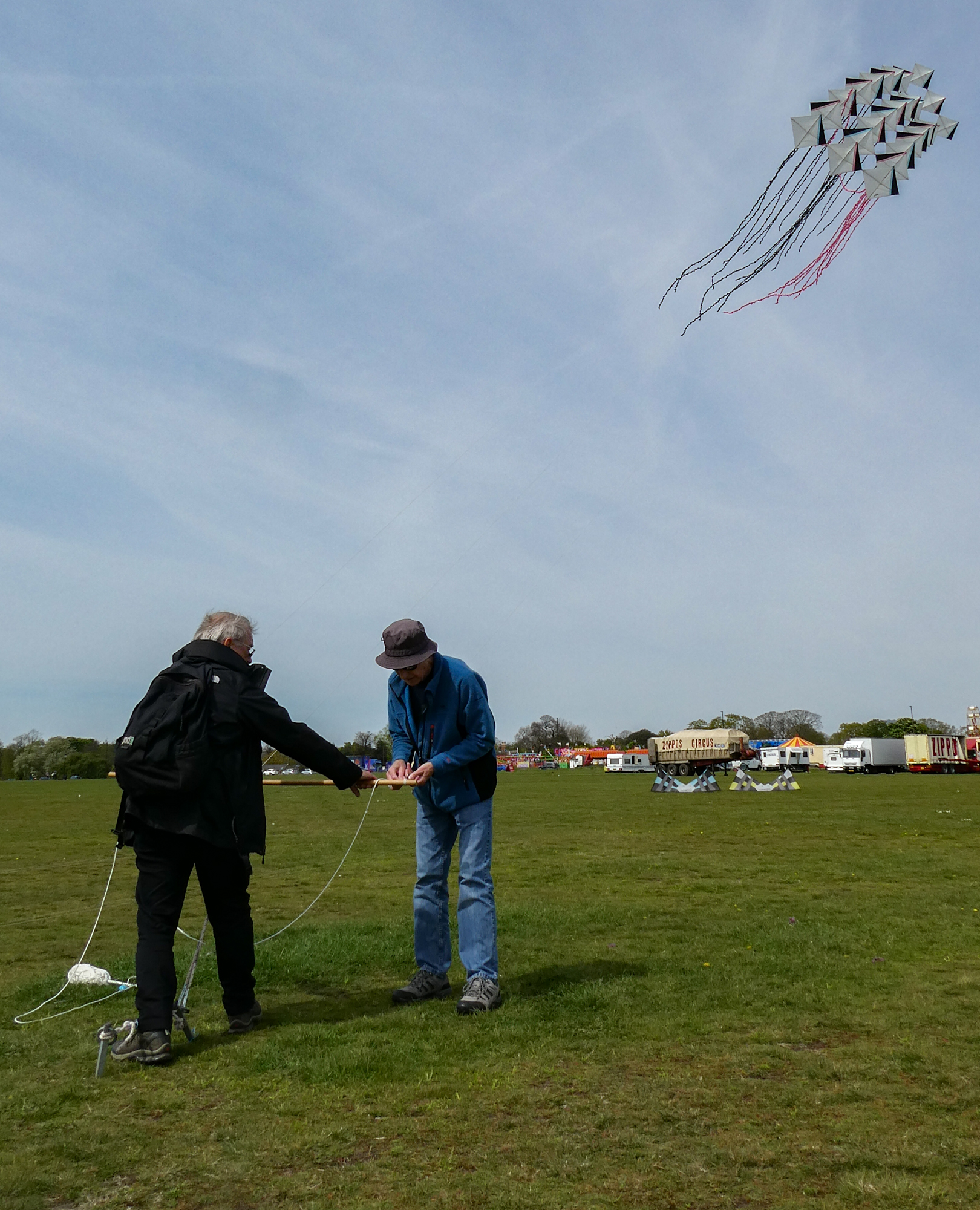 We were grateful to have confirmation of the method for preparing for launch of the stacked kites and thank Detlef-Ingeborg for allowing us to use the image here.